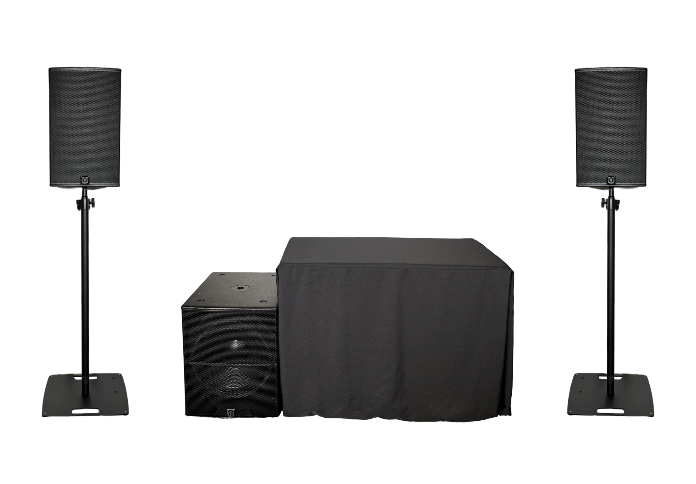 Professional DJ PA system with powerful powerful sound & dynamic dancefloor lighting. Designed to connect a DJ controller.